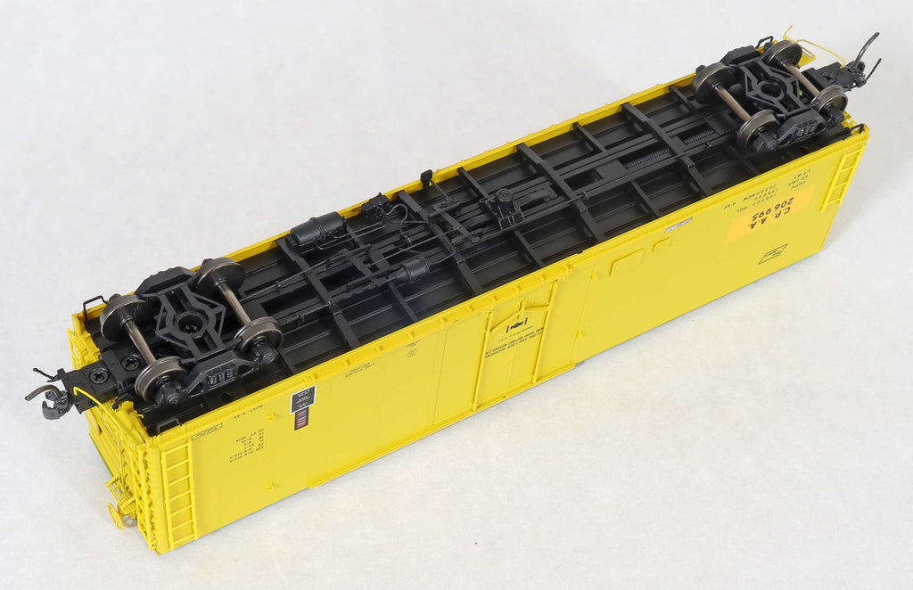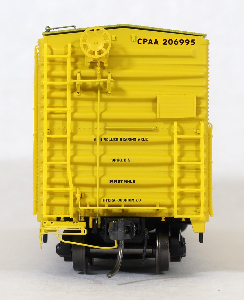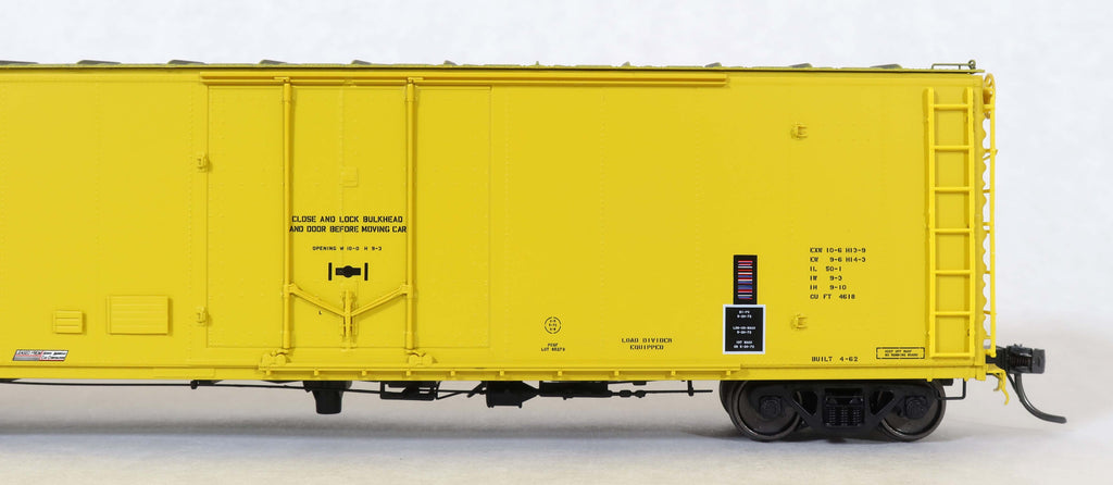 The entire upper body of the boxcar was riveted together from the bottom sill up, in the 6+5 R pattern. Whereas the underframe was fully welded. These were insulated, had proven 20-inch cushioned underframes, usually Hydra-Cushion cushioning devices. Many types and configurations and combinations of loaders were used as per customer specifications, but these specifically were Insulated for PLYWOOD loading.